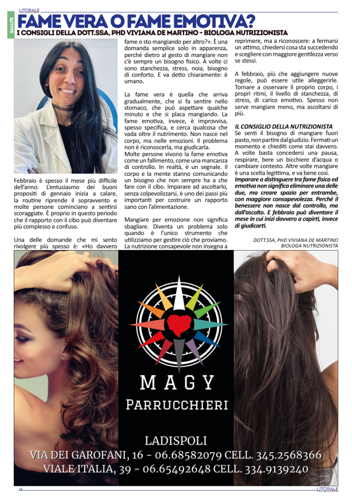 Imparare a distinguere tra fame fisica ed emotiva non significa eliminare una delle due, ma creare spazio per entrambe, con maggiore consapevolezza. Perché il benessere non nasce dal controllo, ma dall’ascolto. E febbraio può diventare il mese in cui inizi davvero a capirti, invece di giudicarti
