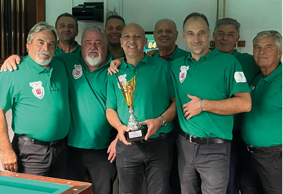 In semifinale l’avversario è di altissimo livello: il “Billiard’s Room” di Ceprano, squadra plurititolata con cinque titoli regionali e tre campionati italiani consecutivi alle spalle. I Grifoni Verdi riescono a portarsi in vantaggio 3-1 grazie a un’ottima strategia, ma sul punto decisivo — con la coppia Perriello-Mariani schierata al doppio all’italiana — gli avversari ribaltano la situazione sfruttando ogni minimo errore.