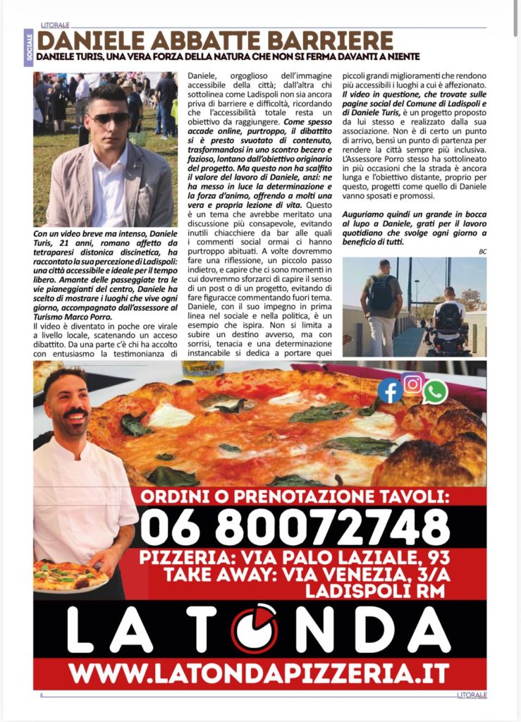 Con un video breve ma intenso, Daniele Turis, 21 anni, romano affetto da tetraparesi distonica discinetica, ha raccontato la sua percezione di Ladispoli: una città accessibile e ideale per il tempo libero.