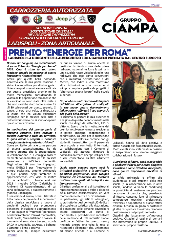 Quale ruolo possono avere oggi le istituzioni scolastiche, e in particolare gli istituti professionali, nello sviluppo culturale ed economico del territorio costiero come quello di Ladispoli e del litorale romano?