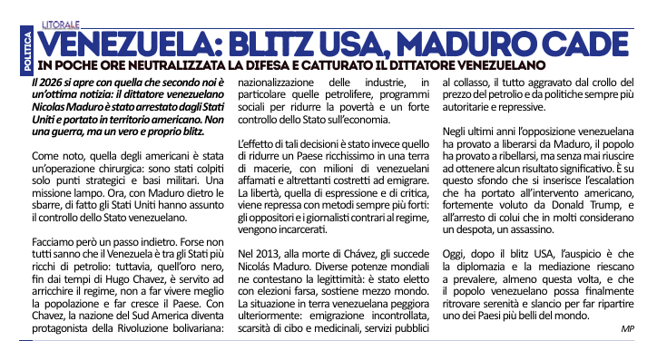 Oggi, dopo il blitz USA, l’auspicio è che la diplomazia e la mediazione riescano a prevalere, almeno questa volta, e che il popolo venezuelano possa finalmente ritrovare serenità e slancio per far ripartire uno dei Paesi più belli del mondo.